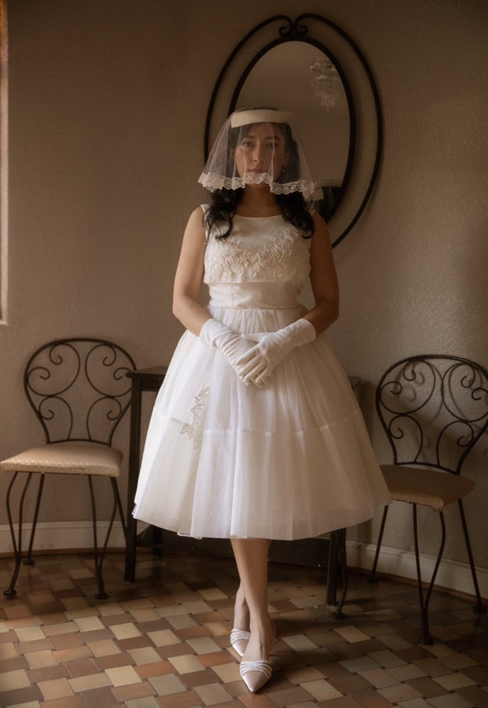Timeless and romantic, this original 1960s bridal veil features a simple cap with soft tulle trimmed in lace. This creates a "bubble" silhouette framing the face in such vintage manner!